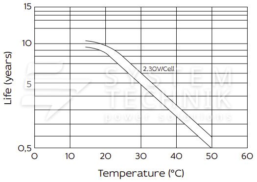 - Срок хранения без подзаряда: 6 мес. при 25°C;