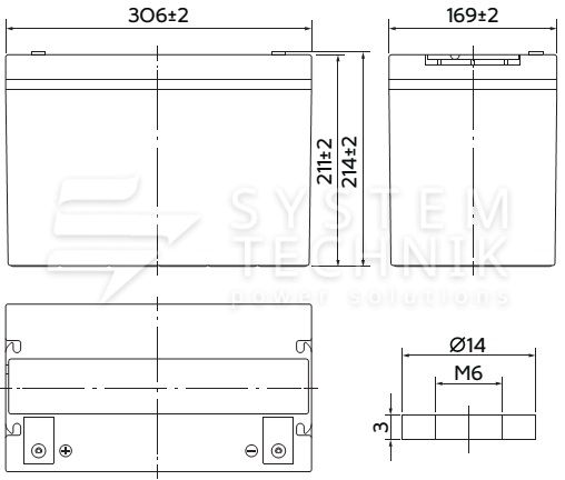 - Срок хранения без подзаряда: 6 мес. при 25°C;