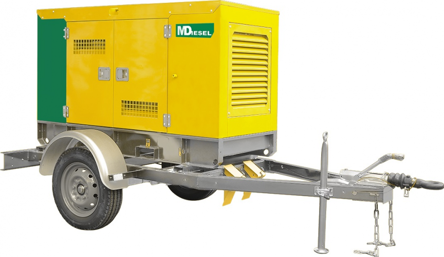 - MitsuDiesel МД ЭД-60-Т400-1РКМ29 в шумозащитном кожухе на шасси на прицепе