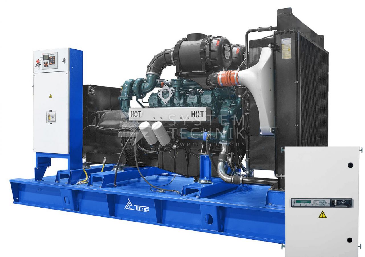 Категории товара: Дизельные генераторы 500 кВт ДГУ открытого типа Трехфазные дизельные генераторы Дизель-генераторы ТСС АД 500С Т400